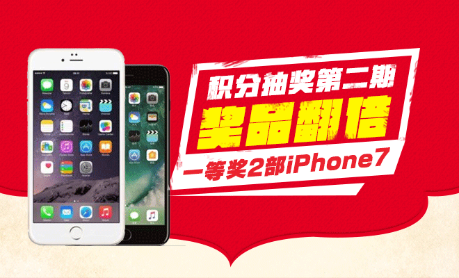 积分抽奖赢iPhone7手机大奖第二期火热开启,2部iPhone7+5600元手机话费静候幸运网点瓜分!