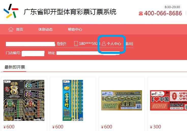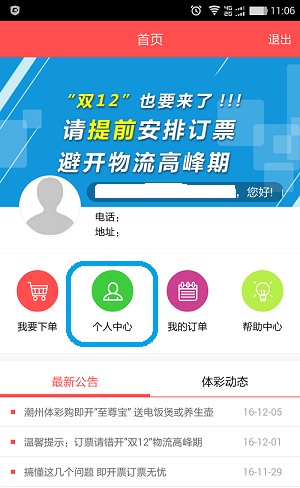 第一步:打开APP或公众号微信订票,登录门店编号,进入个人中心。